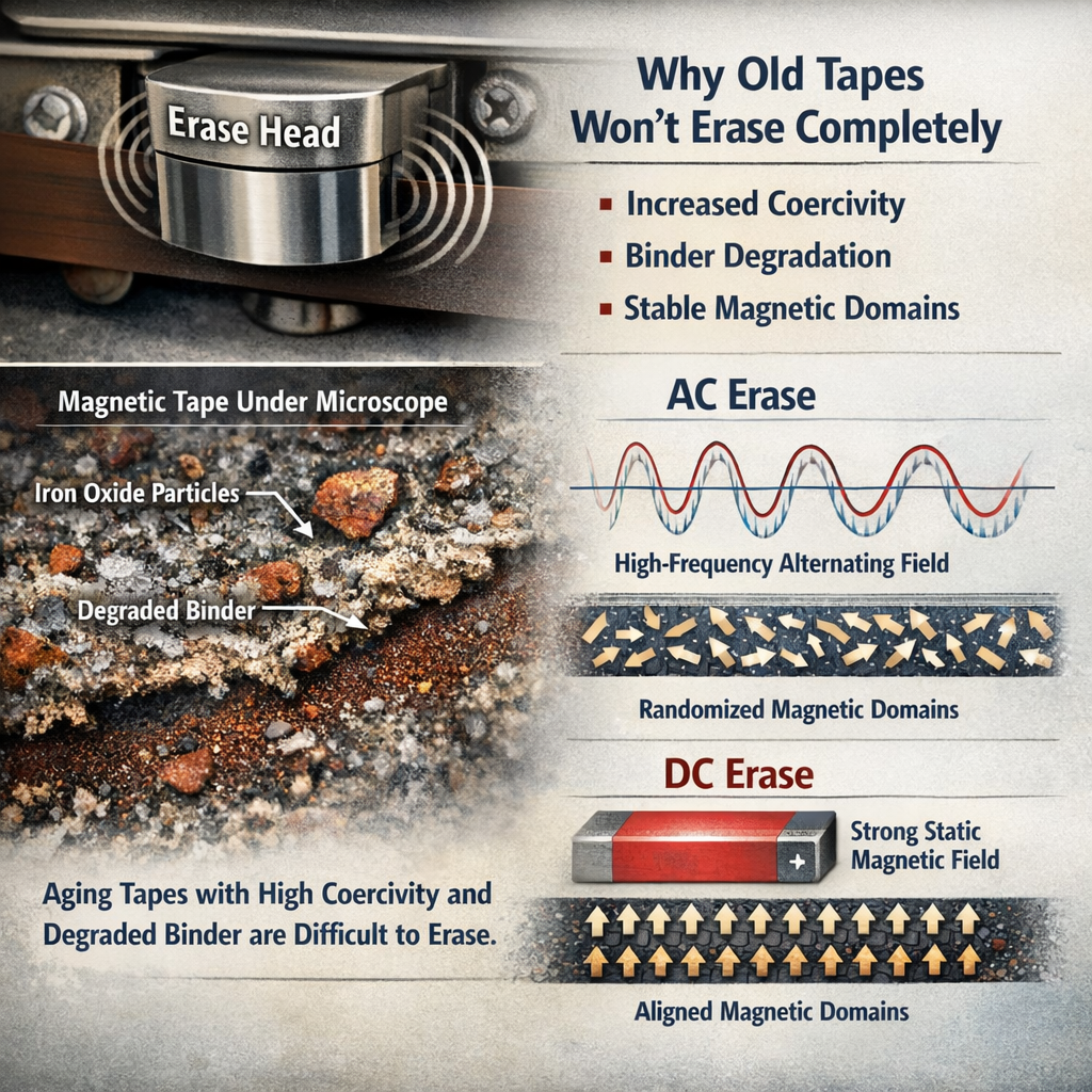 Častou příčinou bývá ztvrdlá přítlačná kladka nebo opotřebovaný řemínek. Pás se pak posouvá nerovnoměrně a zvuk se stává neklidným. Dalším problémem jsou staré magnetofonové pásky trpící tzv. sticky-shed syndromem. Pás se začne lepit, zanáší vedení i hlavy a dokáže během chvíle poškodit mechaniku. V takové situaci je vždy lepší přístroj okamžitě zastavit a nepokoušet se pokračovat v přehrávání.