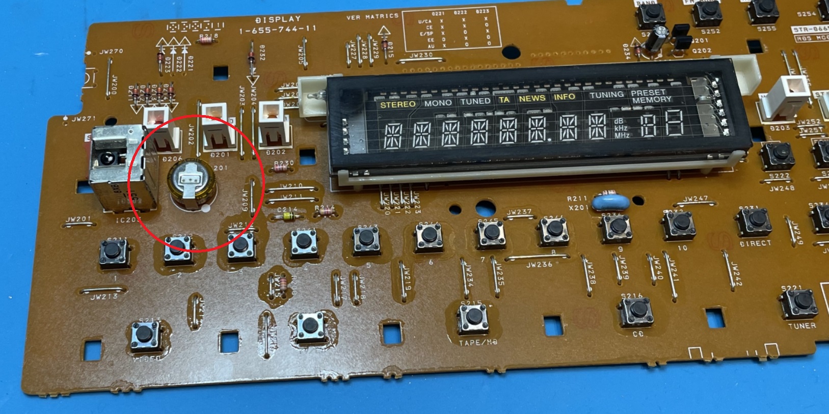 Podobný problém jsem řešil u receiveru. Zde se závada projevovala ztrátou uložených stanic a resetem nastavení po odpojení od napájení. Opět se ukázalo, že na vině je paměťový kondenzátor, který už nebyl schopen udržet potřebné napětí pro zálohování paměti.