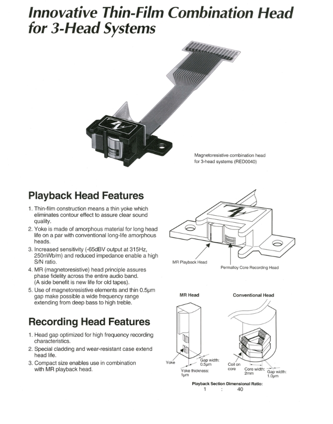 Nevýhodou prvních generací MR hlav byla jejich neschopnost záznamu, a proto musela být použita samostatná záznamová hlava. Toto řešení se uplatňuje i u modelů RS-AZ6 a RS-AZ7, kde je oddělena reprodukční a záznamová část.