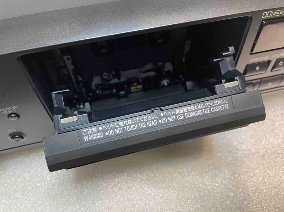 Zajímavým a poměrně neobvyklým detailem u tohoto modelu je upozornění přímo na dvířkách kazetového prostoru, že hlavy se nemají demagnetizovat. Na první pohled to může působit nelogicky, protože demagnetizace je u klasických magnetofonů běžnou součástí údržby. V případě Thin-Film hlav je ale situace odlišná.