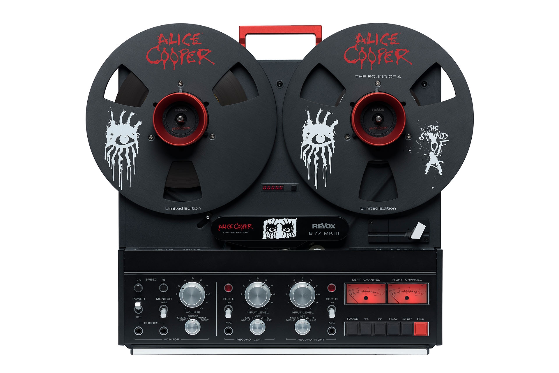 Revox B77 MK III Alice Cooper Limited Edition je mimořádná limitovaná verze legendárního kotoučového magnetofonu, vytvořená ve spolupráci s rockovou ikonou Alice Cooperem. Tato exkluzivní edice je omezena na pouhých 25 kusů na celém světě a každý přístroj je ručně podepsán a individuálně očíslován, což z něj činí nejen špičkové audio zařízení, ale také výjimečný sběratelský artefakt.