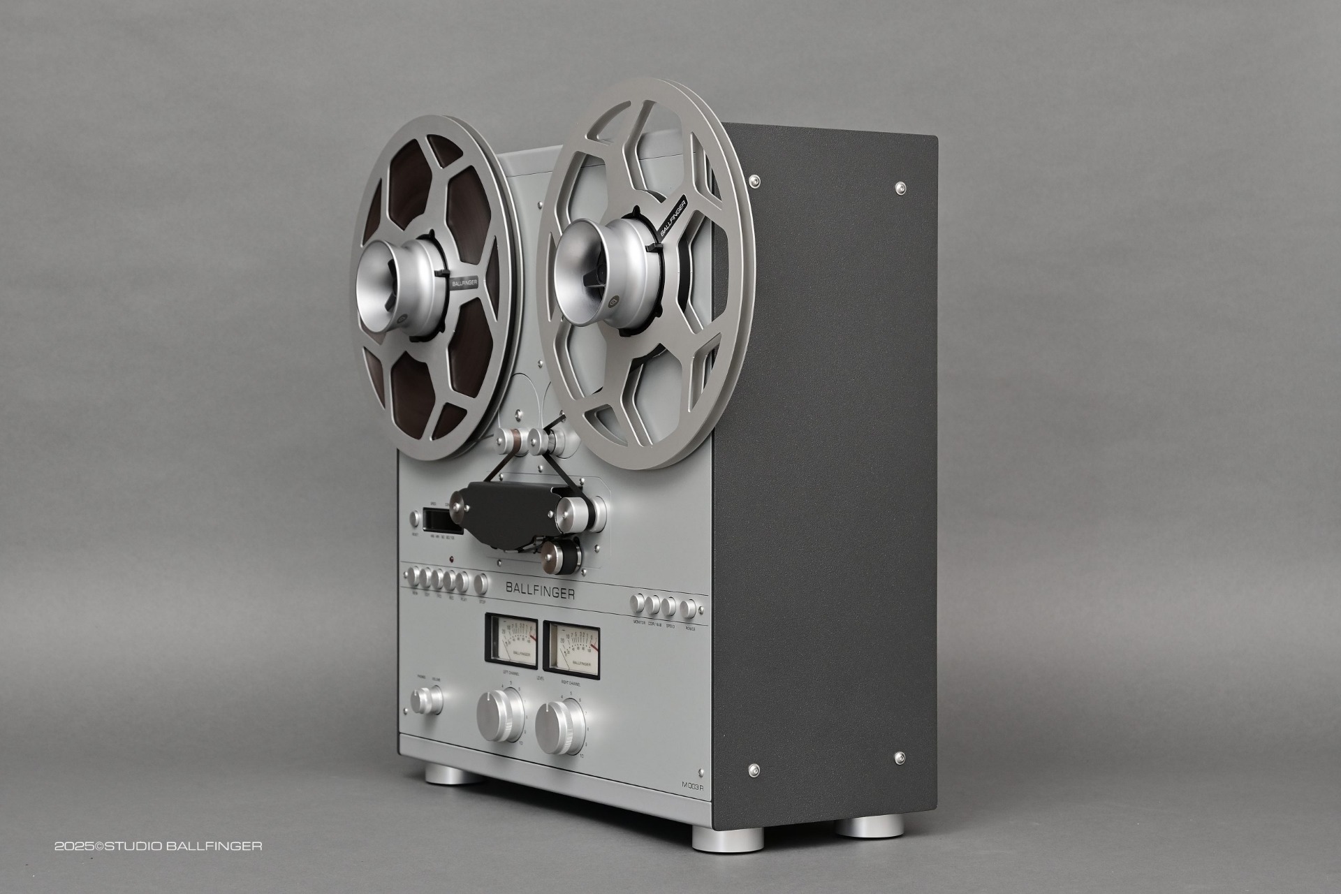 Ballfinger M 003 R je špičkový analogový kotoučový magnetofon navržený pro profesionální záznam i reprodukci ve studiové kvalitě. Tento model představuje plnohodnotný master rekordér ve formátu 1/4" half-track, který kombinuje moderní konstrukční technologie s tradiční analogovou filozofií. Je určen pro náročné uživatele, kteří požadují maximální přesnost, stabilitu a dlouhodobou spolehlivost.